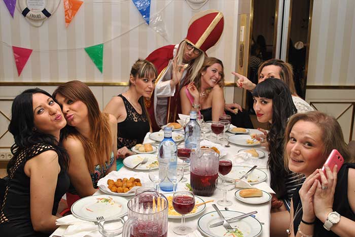 El espectáculo de la noche será lo más personalizado posible, ajustándose a aquello que más le guste a los novios. Y es que en esta modalidad tenéis un sinfín de ideas para despedidas de solter@ entre las que elegir: desde una noche al estilo de Hollywood, destinada a los amantes de lo clásico y en donde contaréis con nuestro Paparazzi y nuestro peculiar director de cine Almendrabal, temática al estilo Colegio de Monjas con Tolín y la señorita Rotermayer, Años 60 Va de retro con Agustín Power, temática Sexo en New York para las despedidas mas cool acompañadas por nuestro estilista, Piratas de Caribe con nuestro capitán Jack Espárrago, Vacaciones en el mar con nuestras azafatas locas y nuestro capitán o la gran despedida 1001 noches con nuestro gurú del sexo y nuestra profesora de Tantra y danza del vientre. Un sinfín de ideas para despedidas de solter@, todas ellas adaptadas a la personalidad de cada grupo. Y aún así, adaptamos nuestras temáticas a gustos y peticiones concretas sobre los novios.